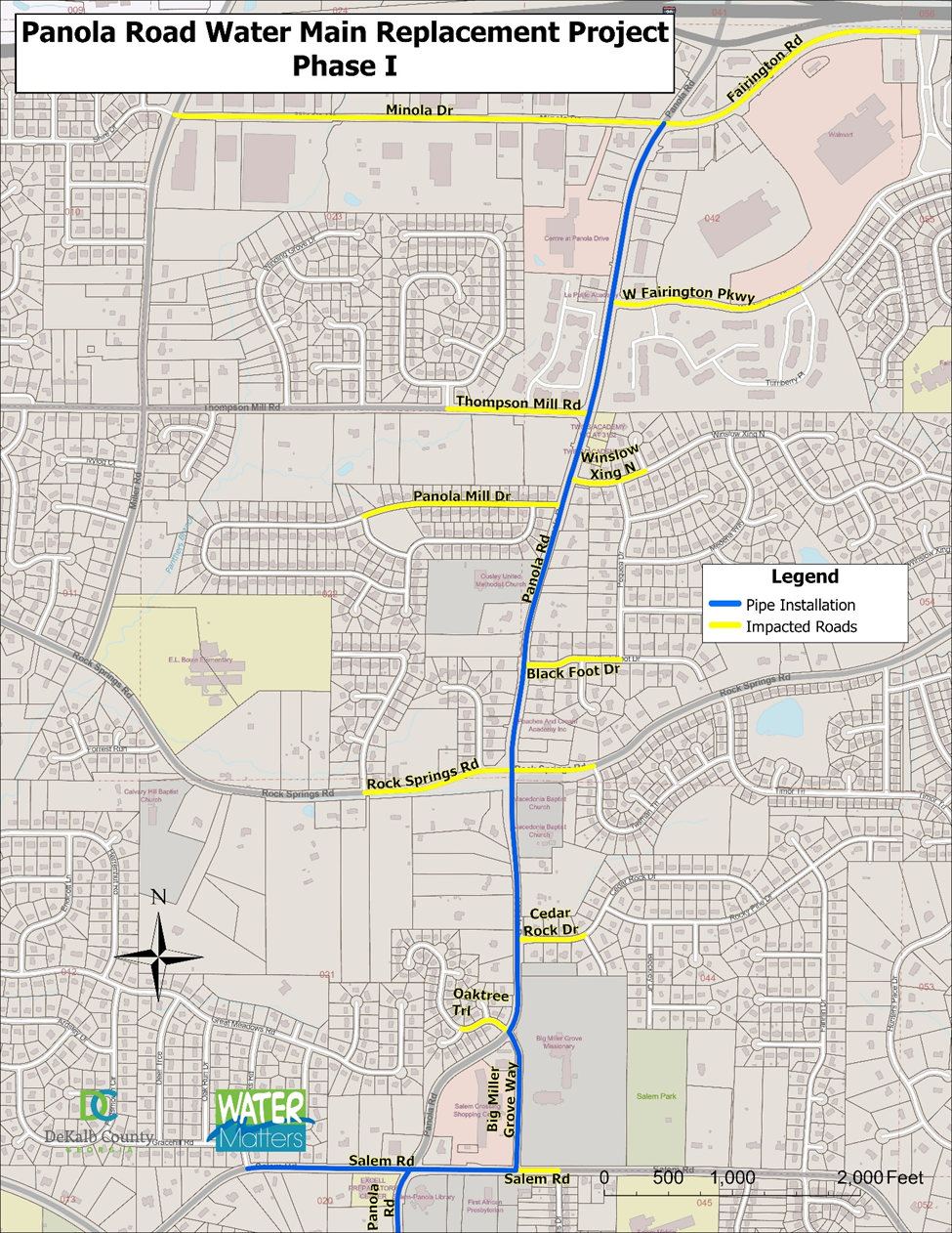 The Panola Road Water Main Replacement Project began on Oct. 13, 2025, and includes replacing approximately 11,400 linear feet of ductile iron water pipe in two phases: