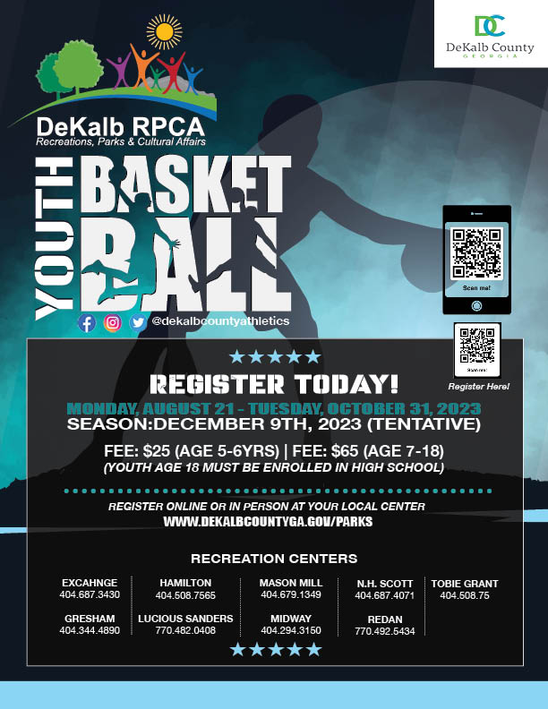 You may register at any recreation center or by visiting  www.dekalbcountyga.gov/parks